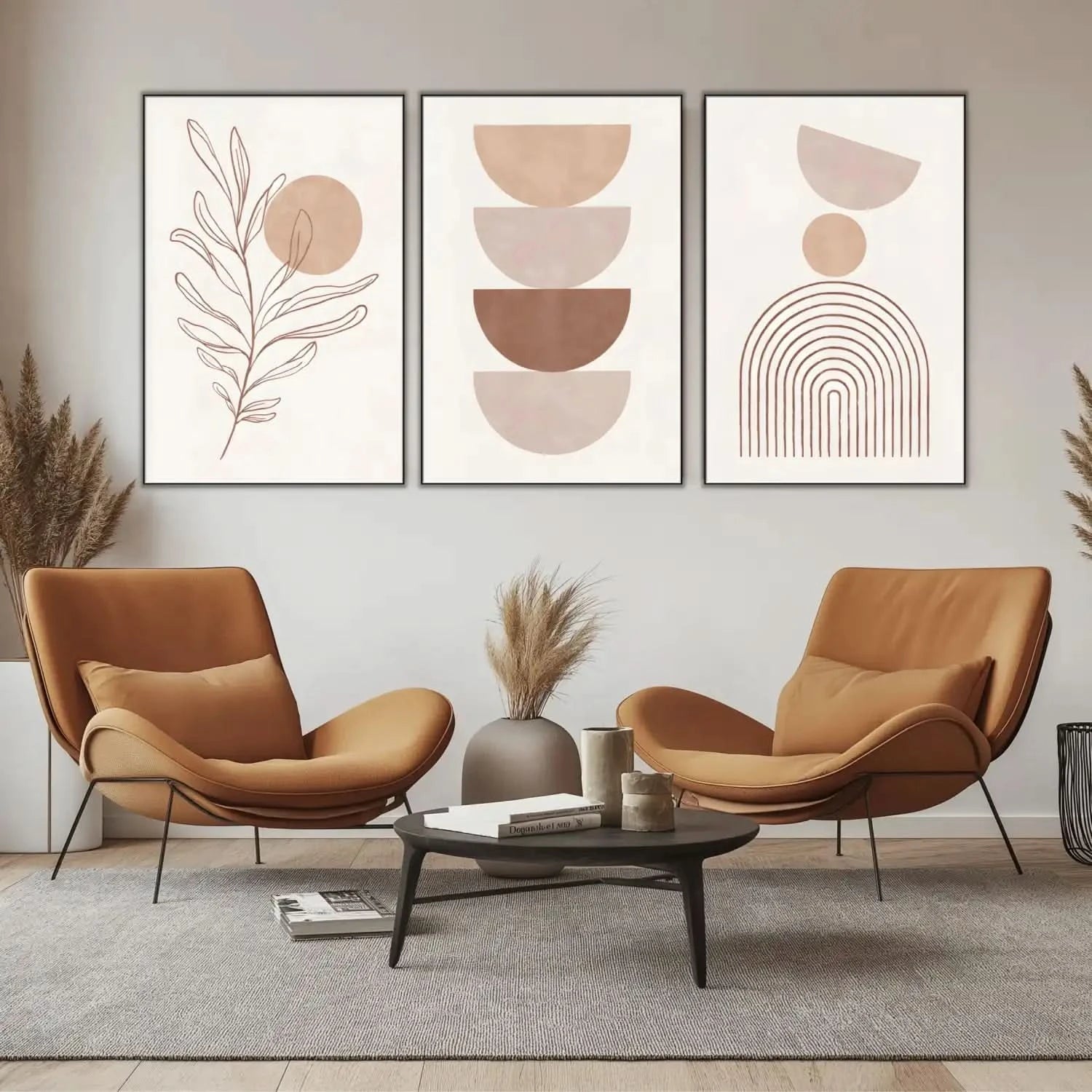 Cette œuvre minimaliste présente des formes géométriques simples avec un demi-cercle, un cercle et des arcs en tons beige doux. Les lignes épurées et les nuances subtiles créent une harmonie visuelle apaisante. La texture lisse et les couleurs neutres ajoutent une touche de sophistication discrète. Idéale pour un salon moderne ou un bureau, elle instaure une ambiance de sérénité et d'équilibre. Parfait pour ceux qui recherchent une décoration murale qui inspire calme et réflexion, tout en apportant une touche contemporaine et élégante à l'espace.
