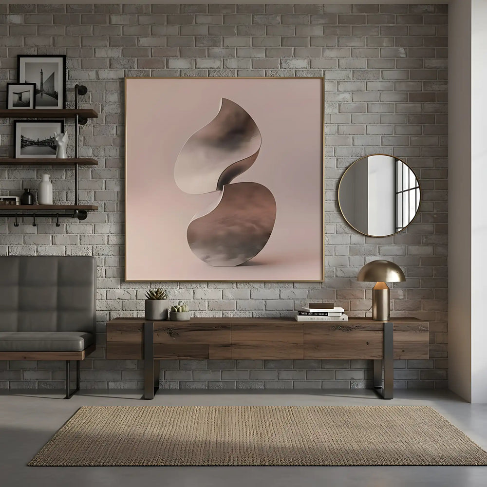 🎨 Cette sculpture 3D contemporaine révèle des formes organiques aux courbes entrelacées, baignées dans une palette de rose poudré et brun terreux. Les gradients subtils créent une surface lisse qui invite à la contemplation.