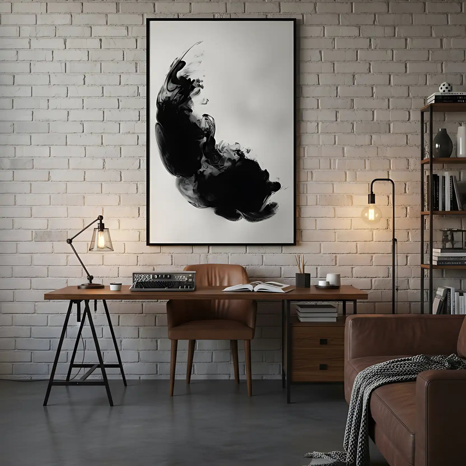 🎨 Cette œuvre d'art fluide abstrait capture la beauté hypnotique de l'encre noire se diffusant dans l'eau, créant des formes organiques d'une élégance saisissante. Les nuances de gris et les transitions douces évoquent une danse silencieuse entre lumière et obscurité.