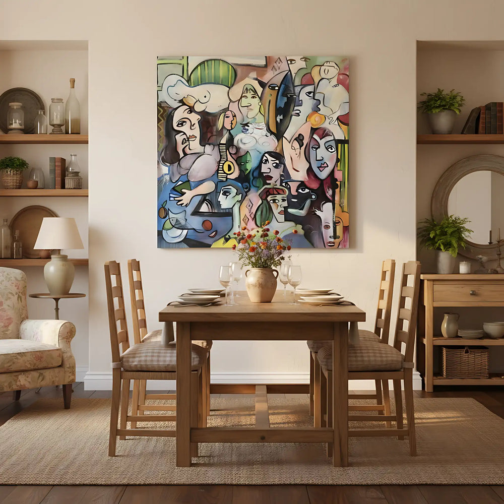 🎨 Plongez dans l'univers fascinant du cubisme contemporain avec cette œuvre saisissante qui décompose et recompose les visages humains en une mosaïque colorée d'émotions. Chaque fragment révèle une facette différente de l'âme humaine.
