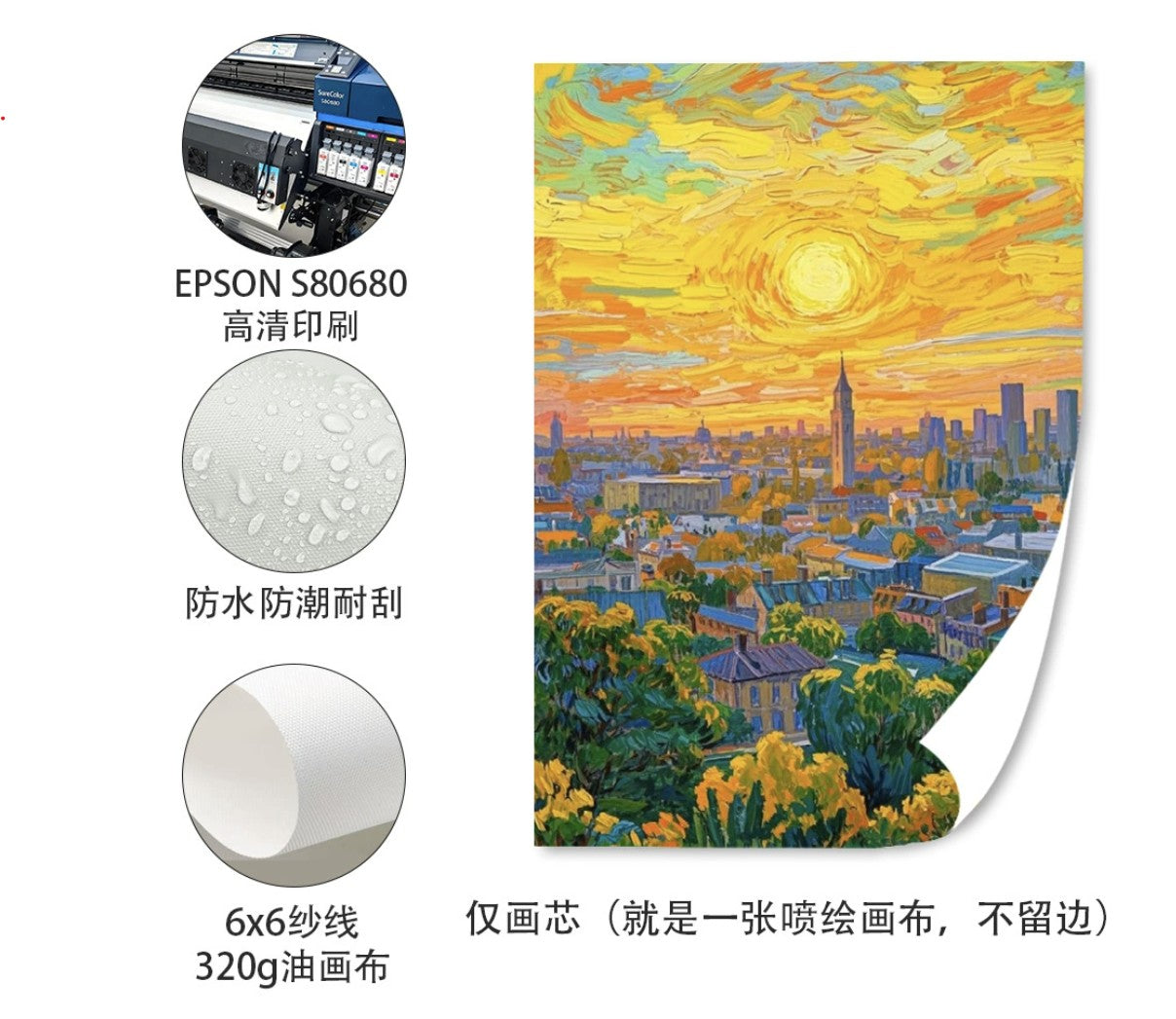 Toile premium 320g/m², encres d'origine : chaque pièce résiste au temps sans perdre son éclat