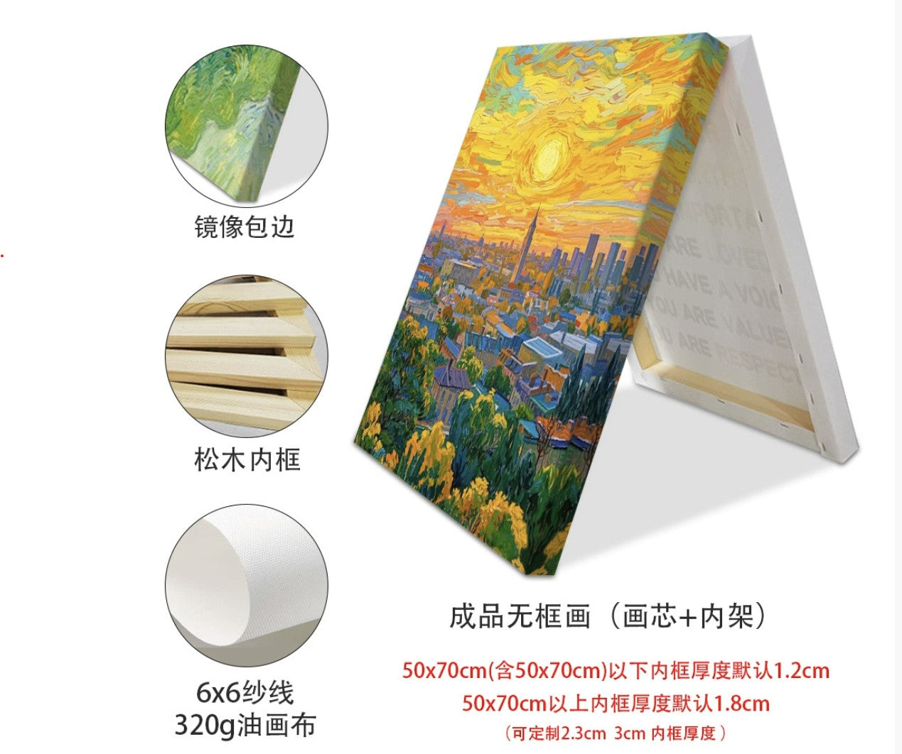 Nos œuvres utilisent des encres haute qualité résistantes à la lumière. En cas de décoloration dans les 6 mois, échange ou remboursement offert.